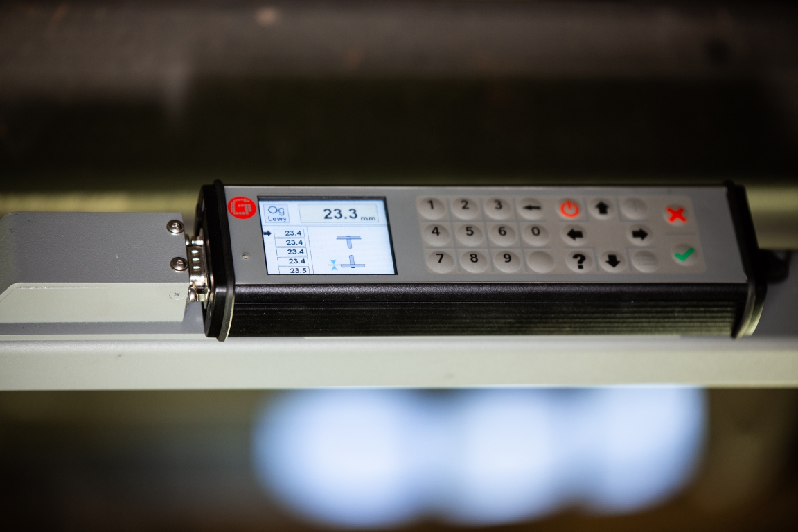 Przyrząd przeznaczony jest do pomiaru szerokości prowadnej kół. Operator może określać wartości dopuszczalne parametrów zgodnie z wymaganiami. Pomiary można prowadzić bez wywiązywania zestawów - bezpośrednio na pojeździe.